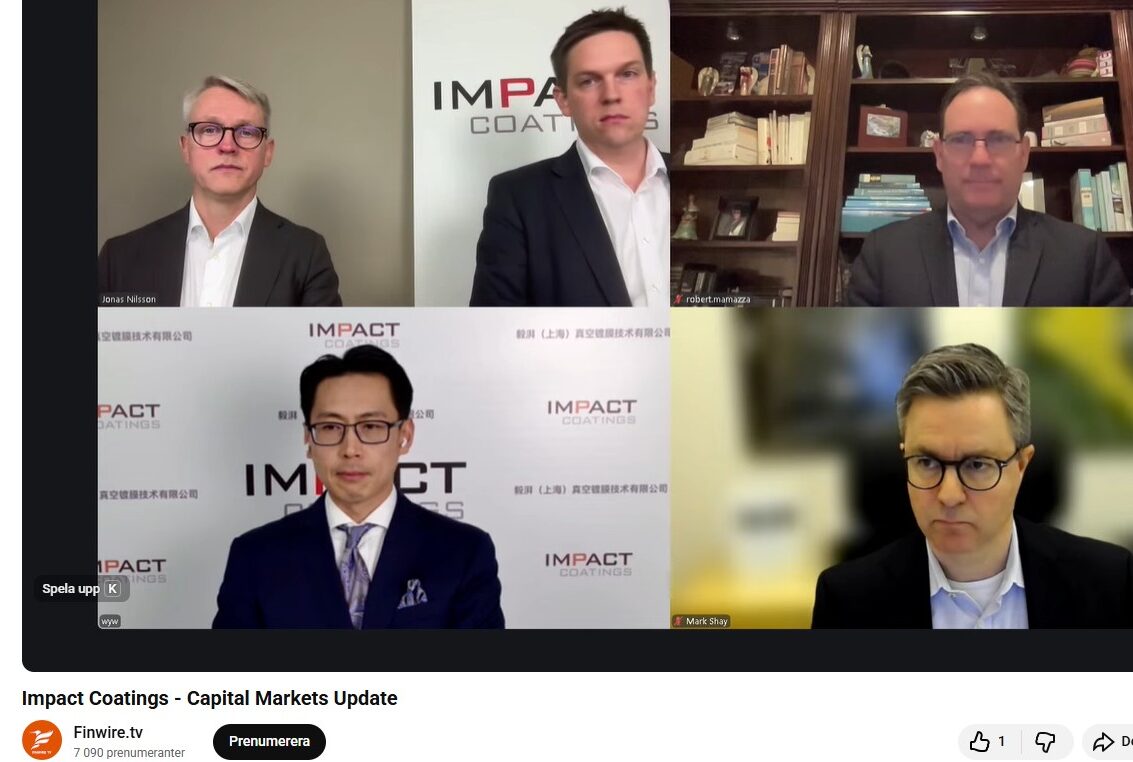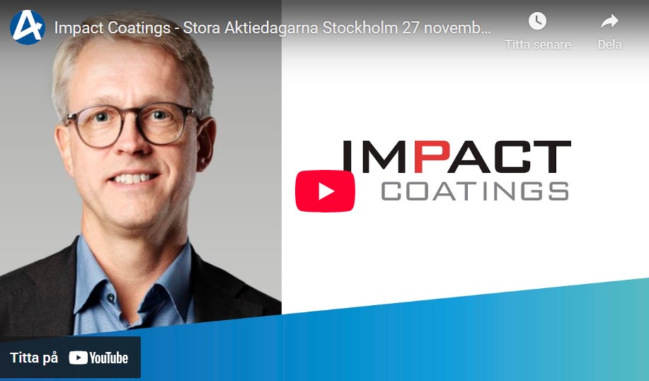 The Impact Coatings share (IMPC) is listed on Nasdaq First North Growth Market (Nasdaq Nordic). The company’s Certified Adviser is Redeye AB.
